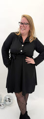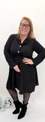 Prachtige basic jurk met gouden knoop, perfect voor iedere dag.