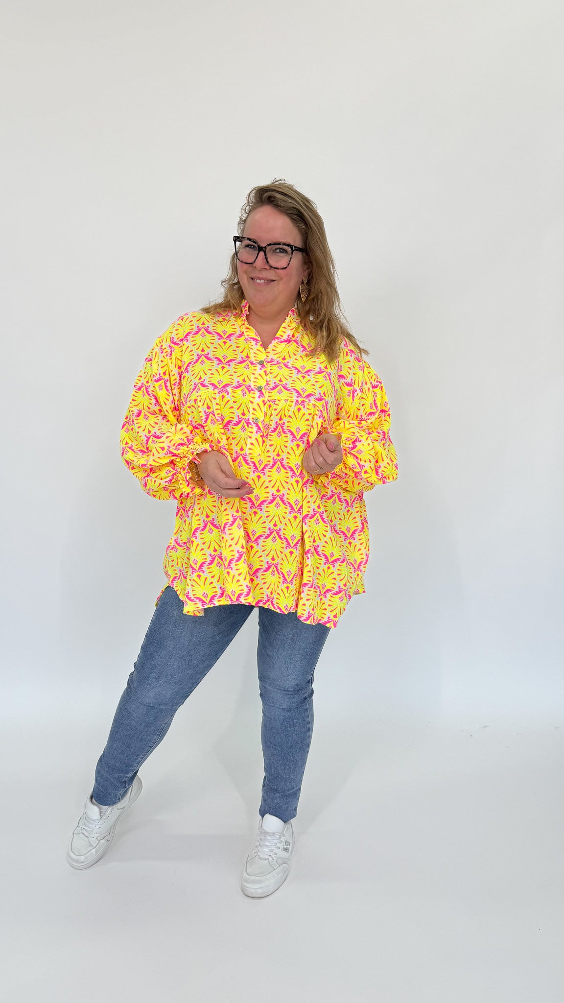 Op zoek naar een katoenen top met veel kleur voor plussize dames? Deze vrolijke en flatterende top combineert comfort, ademend vermogen en een mooie pasvorm ontworpen voor vrouwen met curves. Door het gebruik van hoogwaardig katoen voelt de stof zacht aan op de huid en is hij perfect voor zowel warme dagen als het hele jaar door in laagjes. De kleurrijke print zorgt voor een frisse, modieuze uitstraling en geeft elke outfit direct een boost.