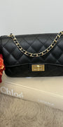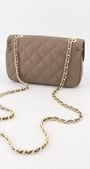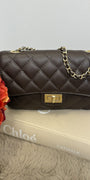- Leren handtas met een lang ketting hengsel.