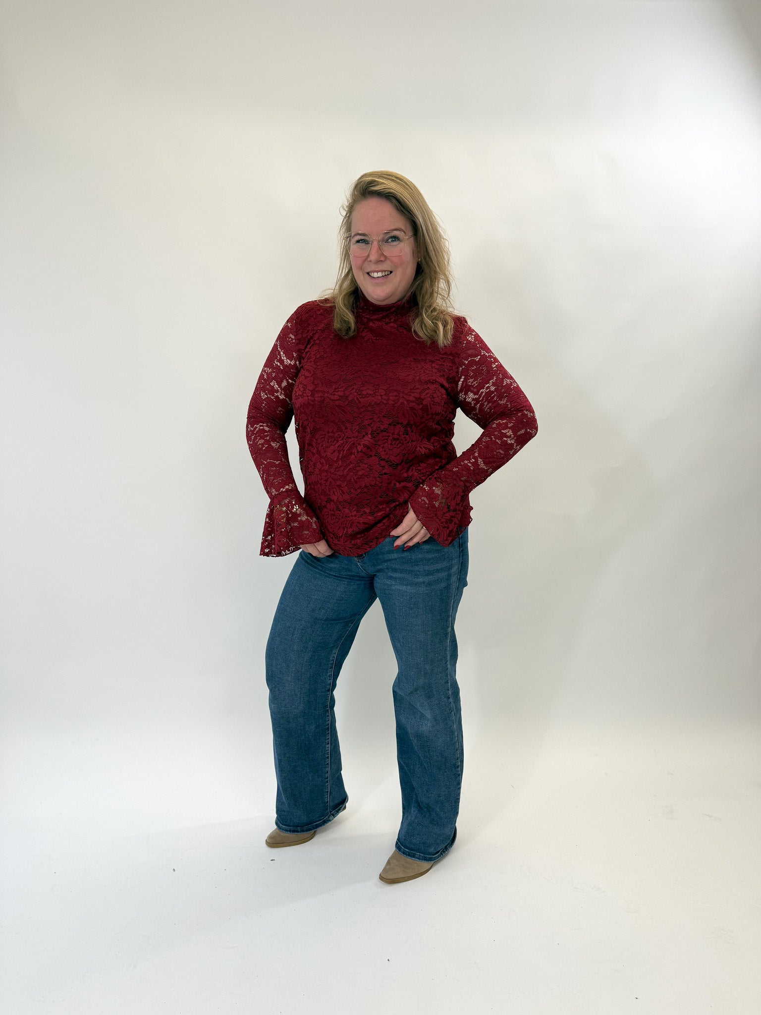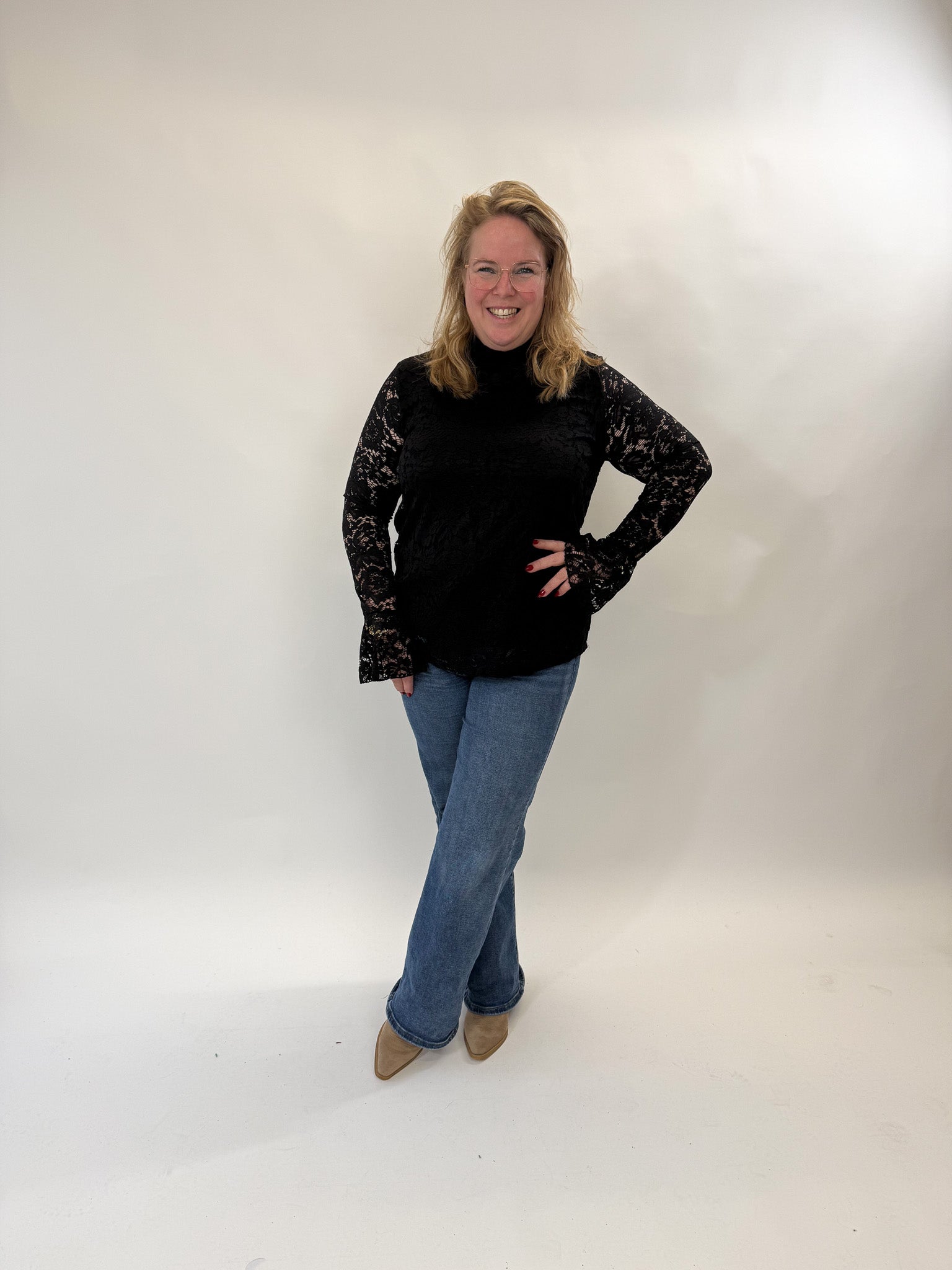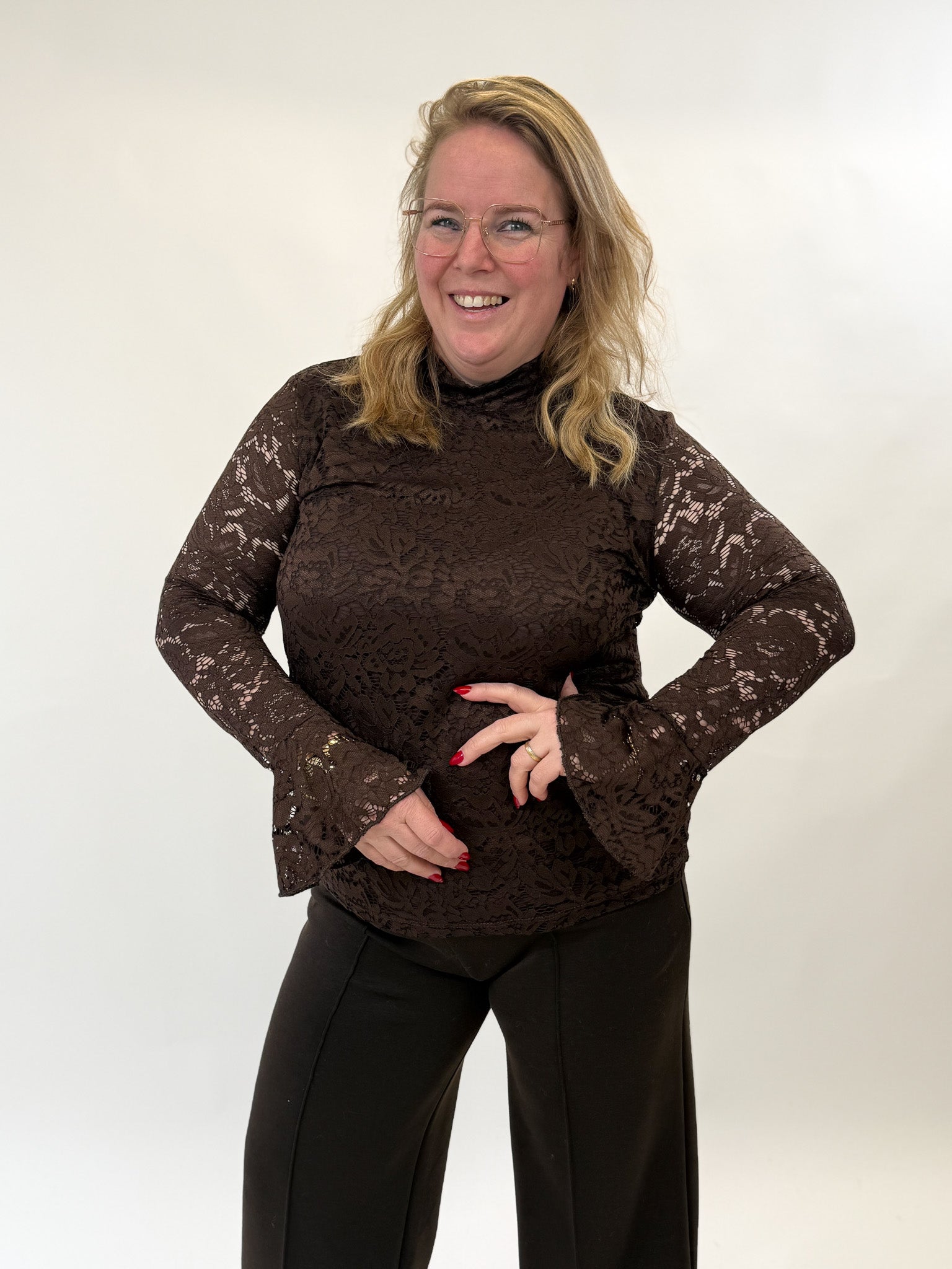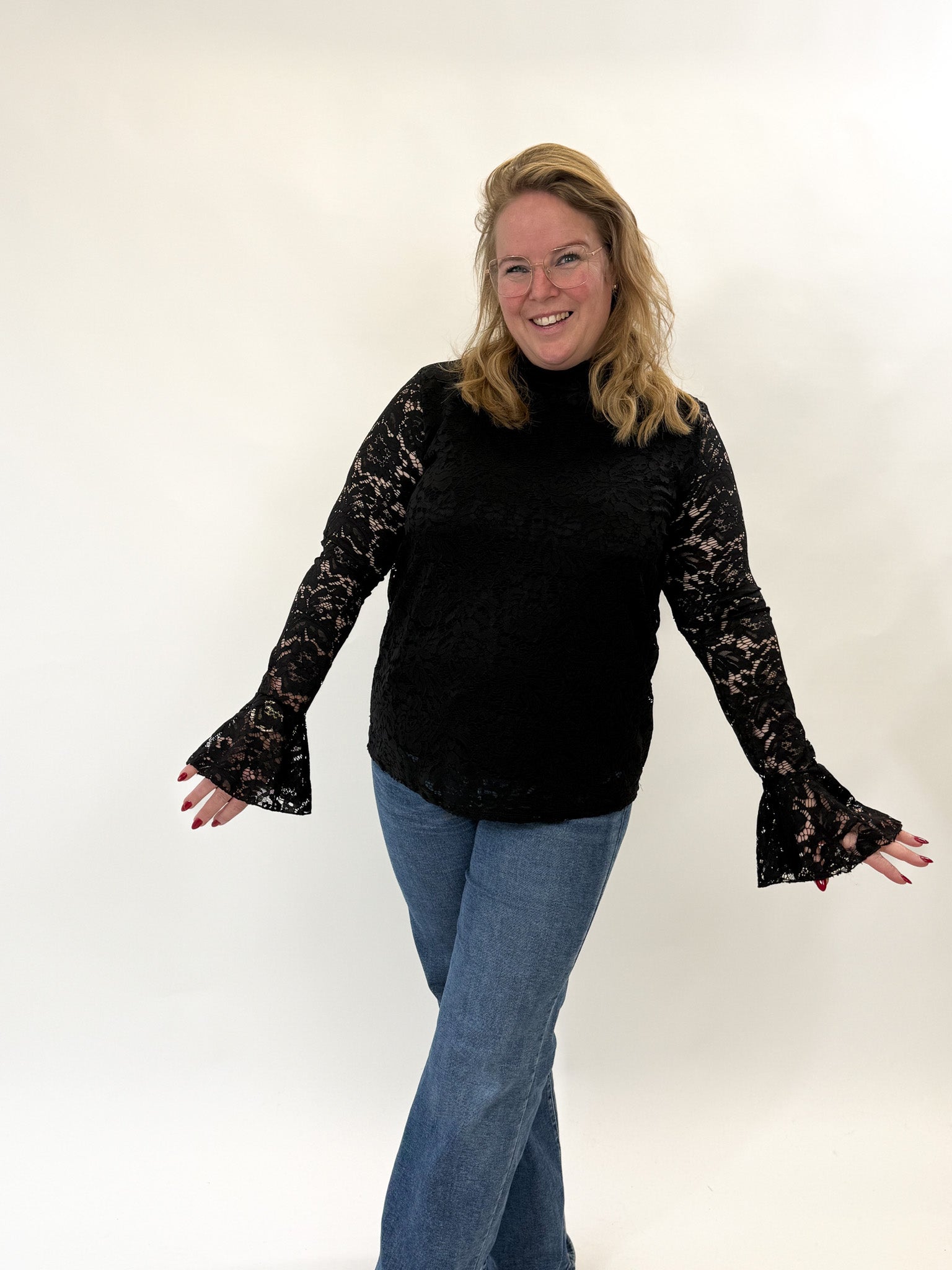 LACE TOP MET FLARED MOUW - 1892